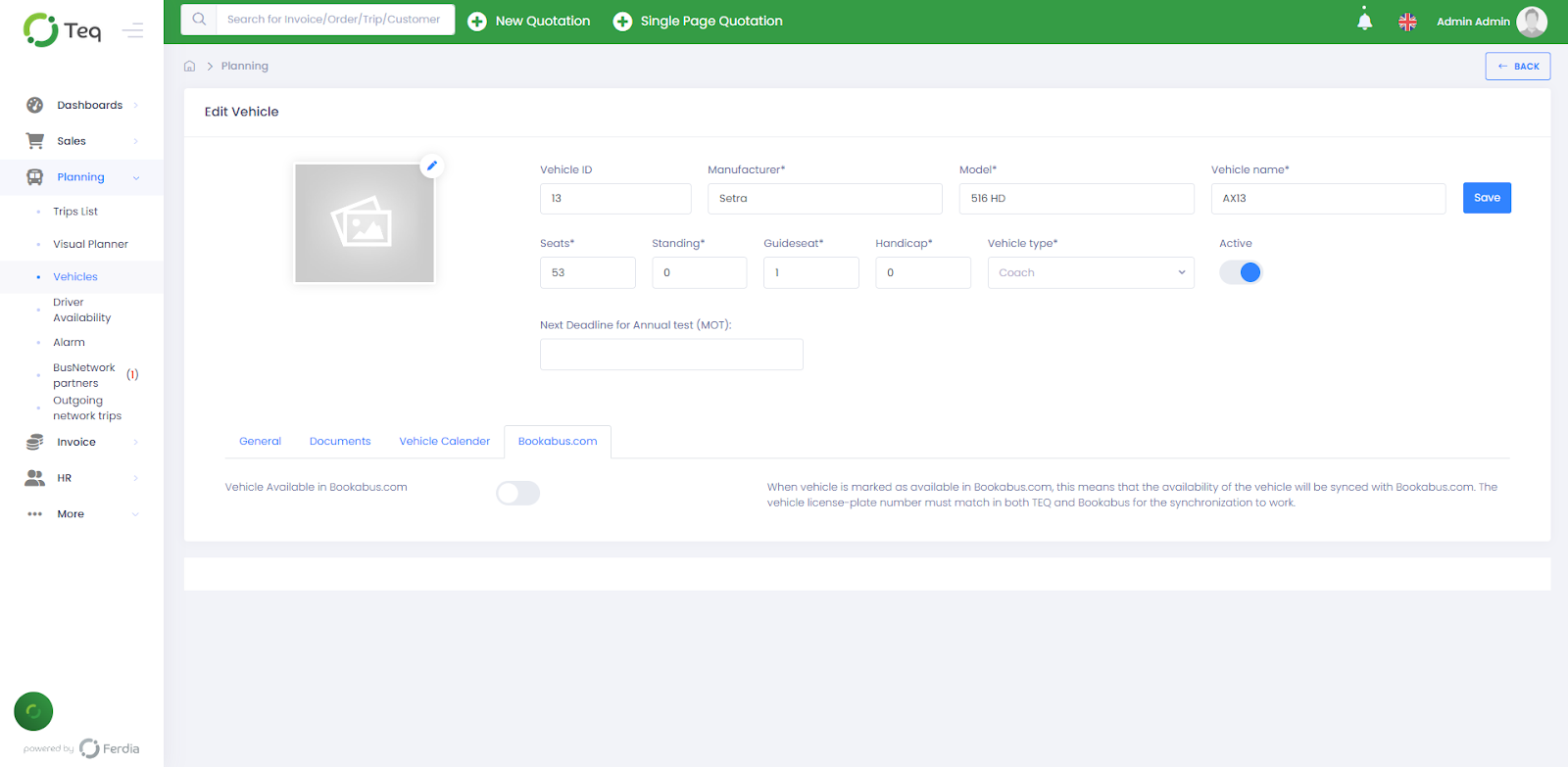 - Check that the vehicle is set to Active under the Bookabus.com tab.