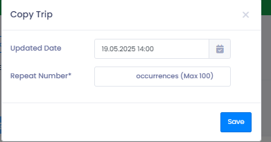 Sometimes a trip or order needs to be repeated but doesnโt qualify as a fixed trip โ for example, a returning customer requesting the same schedule, or a bus making multiple runs to the same destination in one day.