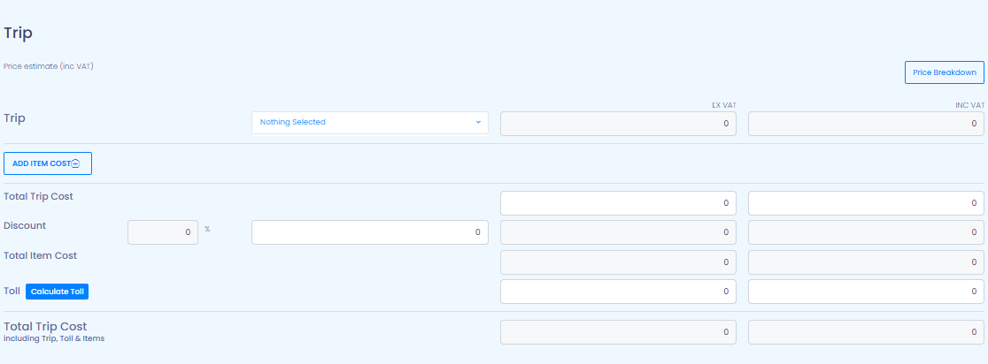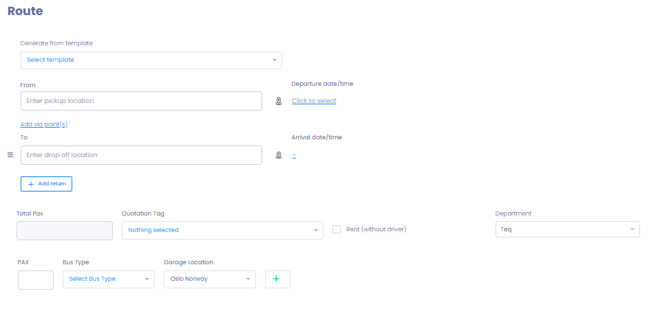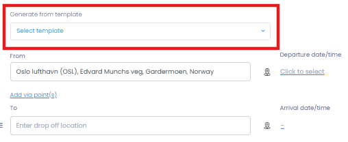 Select an existing template if the same trip details are used frequently (e.g. school routes, shuttle services, fixed customer trips).