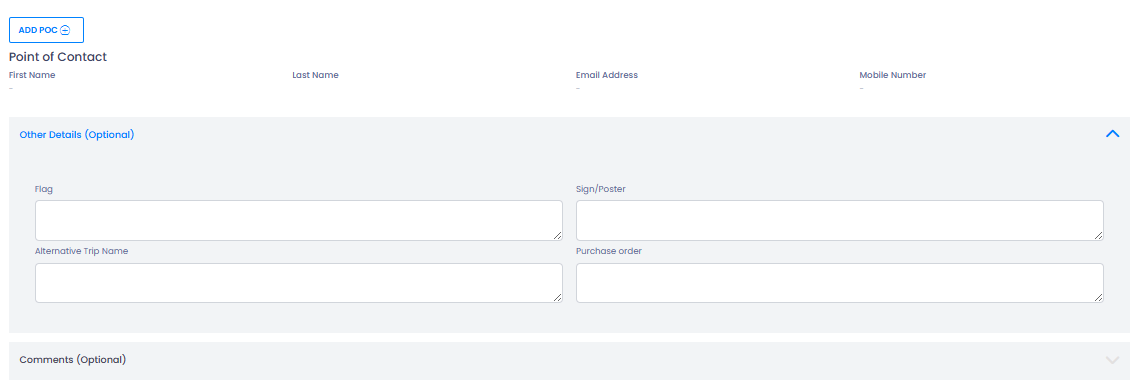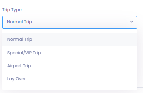 Choose the Trip Type that best matches the nature of the booking. Trip types affect available fields, planning indicators, and workflow reminders.