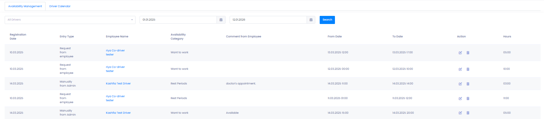 Efficient planning depends on knowing exactly when your drivers are available. TEQ’s Driver Availability and Driver Alarm features allow planners to manage schedules, respond to urgent needs, and keep drivers fully updated through the Ferdia Driver App.