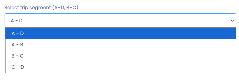 - Check that the trip matches the selected segment (AβD, BβC, etc.).