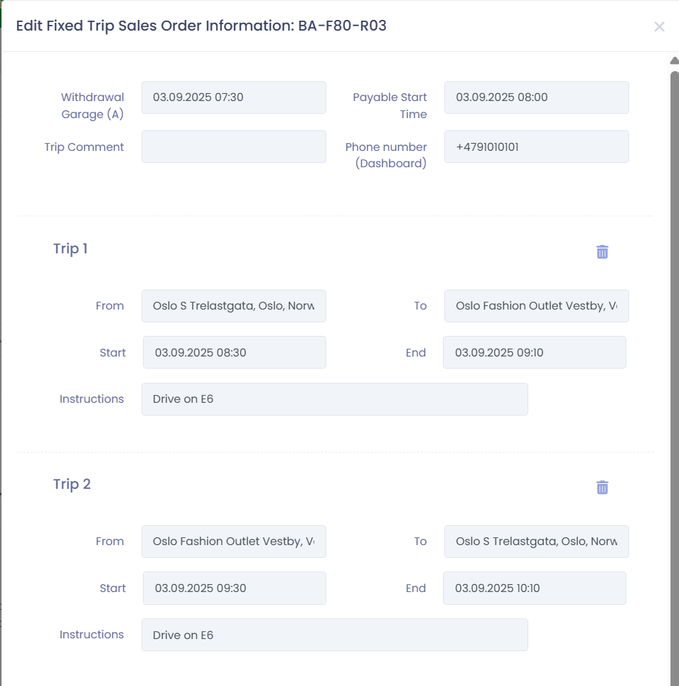 Editing Fixed Trip Orders