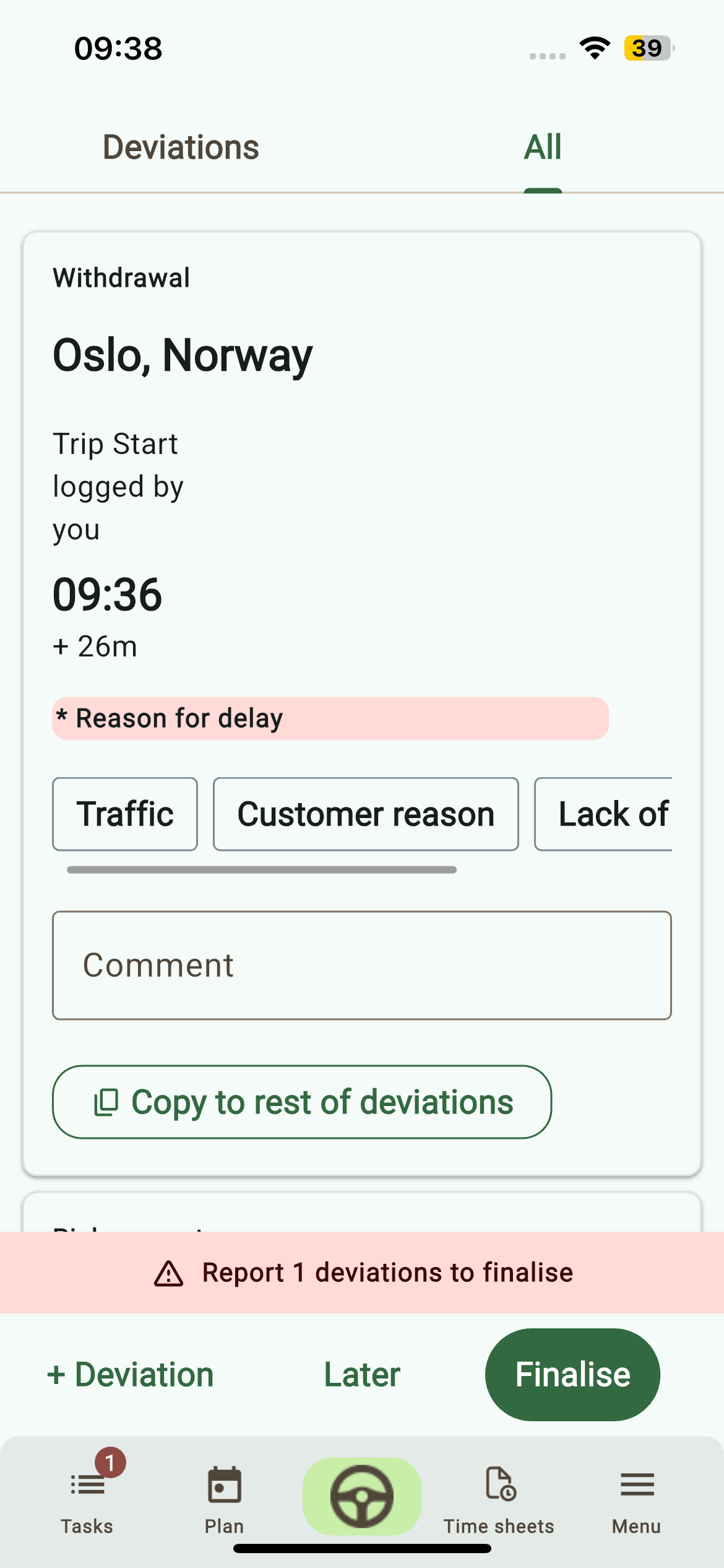 This guide walks you through every part of the workflow. From receiving a trip to logging hours and reporting deviations.