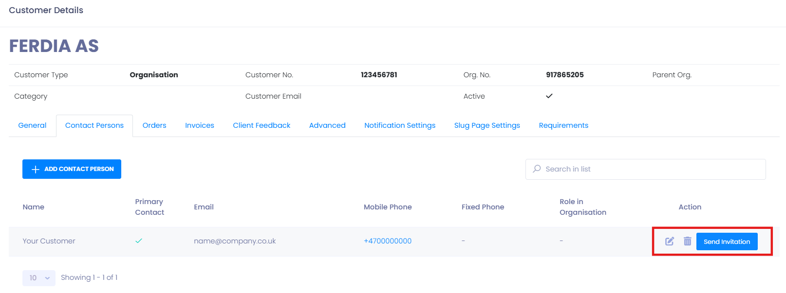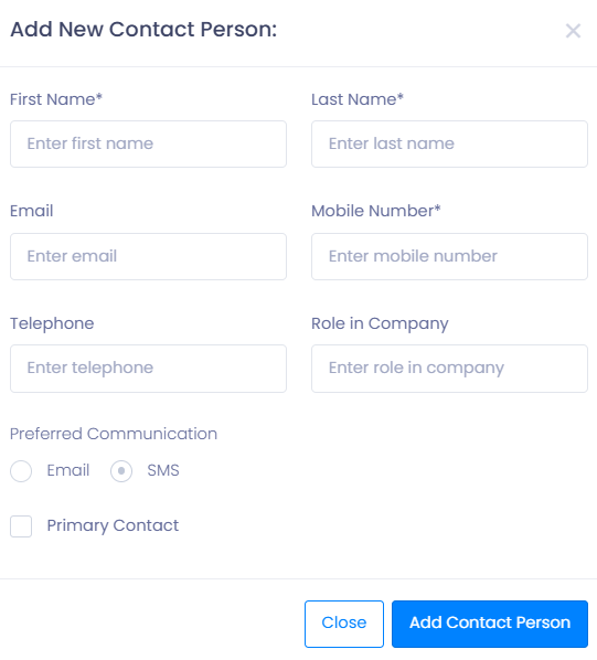 - Ensure at least one contact person is added
