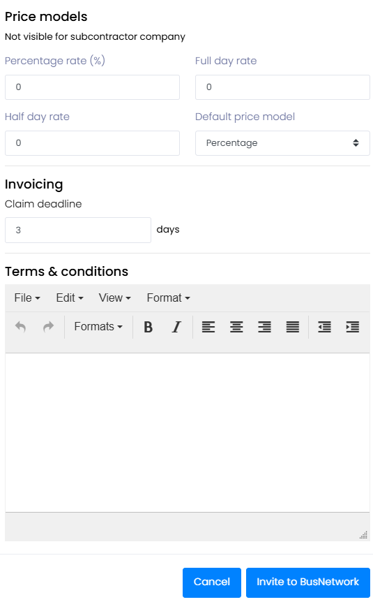 Set how long the subcontractor has to submit claims after the trip is completed. - 📄 Terms and conditions