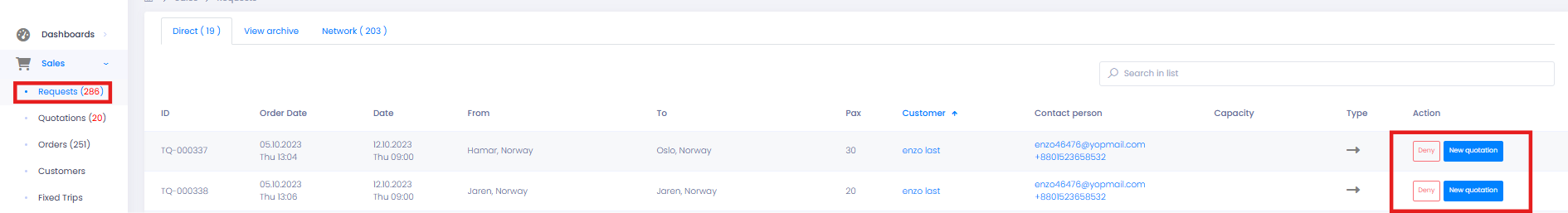 TEQ allows you to manage both customer trip requests submitted through your public query form and requests shared by partners through BusNetwork. This provides a unified workflow for handling all incoming demand.