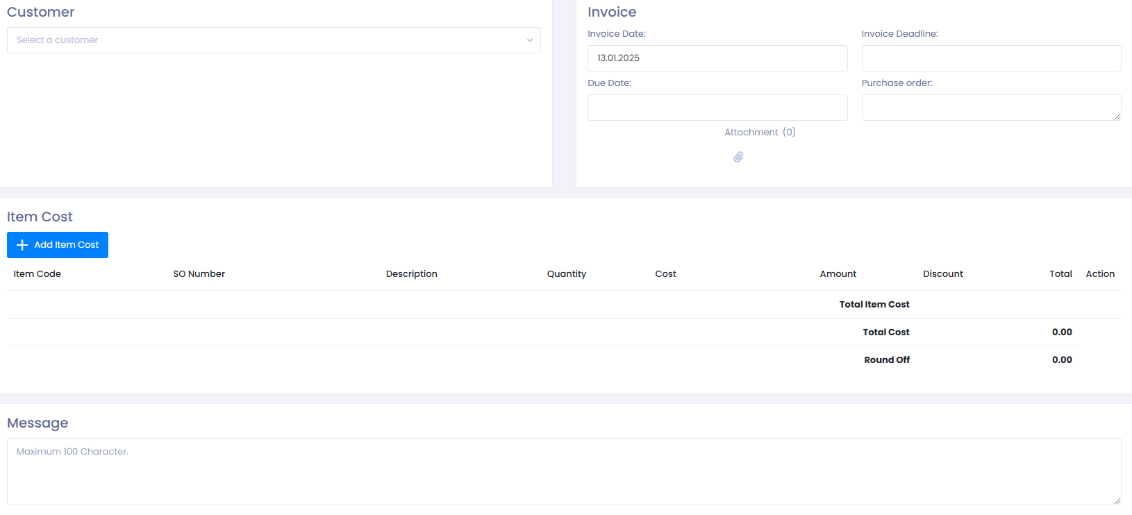 After selecting Regular Invoice, you can build the invoice from scratch: