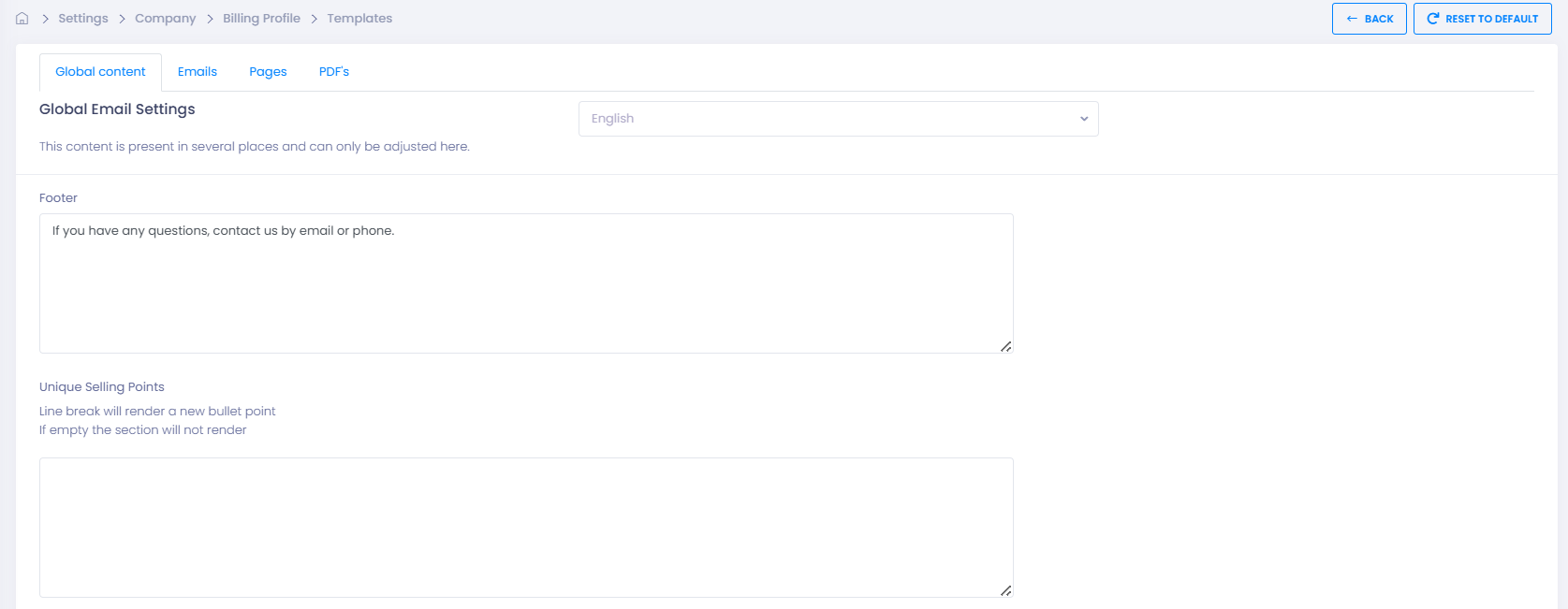 - Make sure you are editing the correct template type (Emails vs. Global Content).