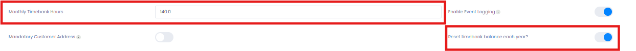 - Choose whether to Reset Timebank Balance Annually.