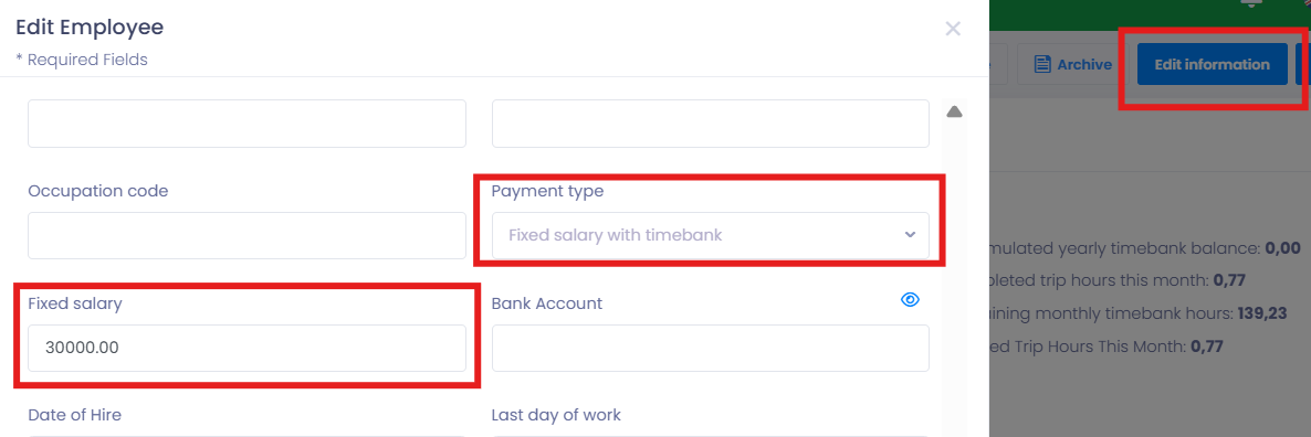 - Ensure the employee is set to Fixed salary with timebank.