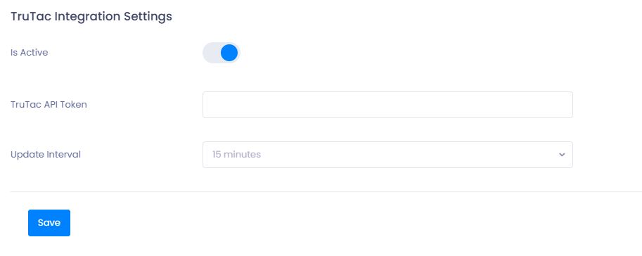 - Paste the API Token into the TruTac API Token field