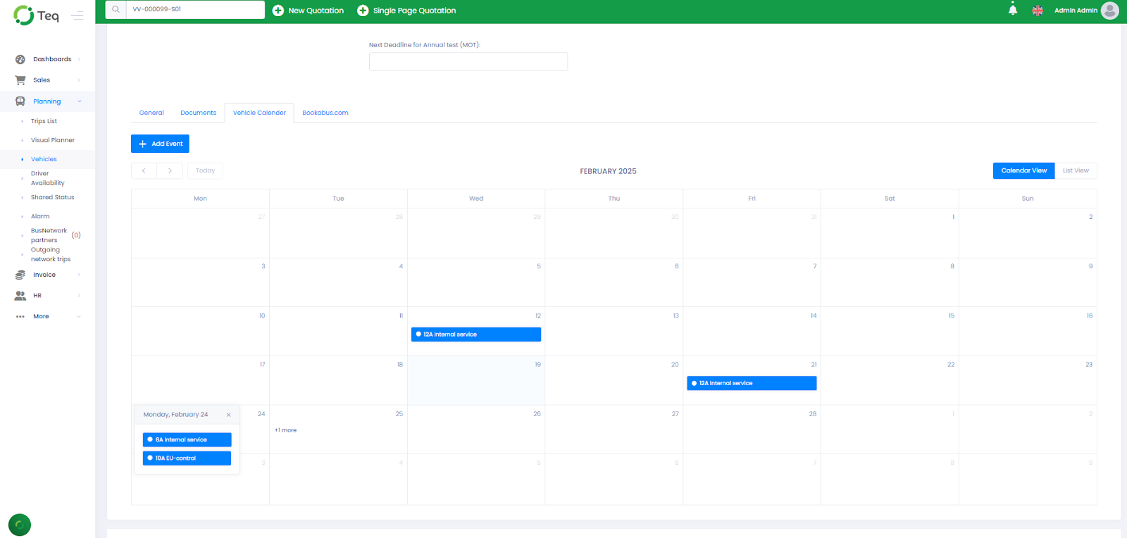 The TruTac integration allows you to synchronize vehicle calendars between TEQ and TruTac, helping you stay compliant and keep scheduling accurate across both systems.