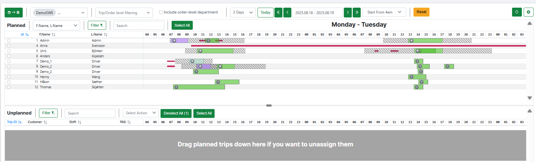 - Planned Trips – trips assigned to resources