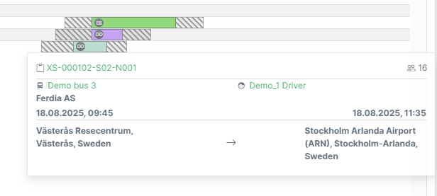 Hover over a trip to see a summary tooltip, perfect for fast checks.